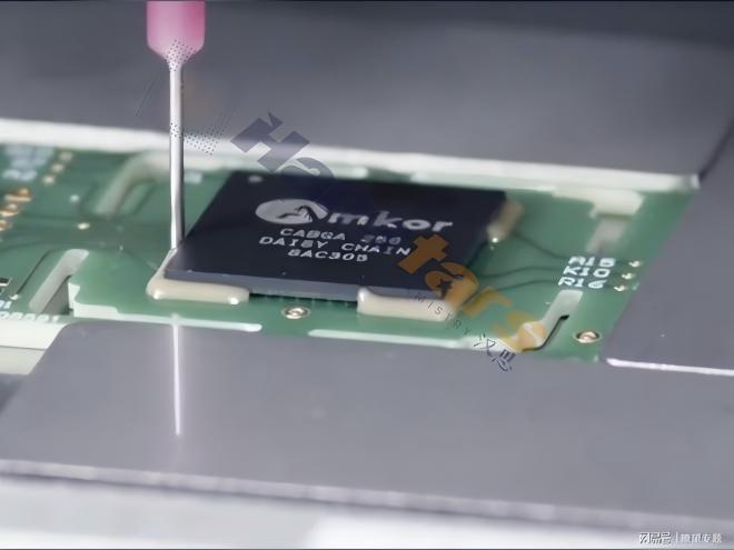 產(chǎn)品簡(jiǎn)介:漢思芯片四角圍堰膠是一款單組份環(huán)氧樹脂膠粘劑,具備中溫快速固化特性。該產(chǎn)品具有極佳的粘著性,耐熱性、耐水汽性能優(yōu)異,可靠性高,主要用于芯片四角固定,廣泛應(yīng)用于BGA、IC存儲(chǔ)卡、陶瓷封裝及柔性電路倒裝芯片的粘結(jié)與包封。適用于高可靠性電子封裝領(lǐng)域。